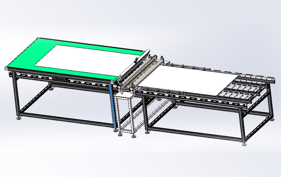 本生產線依據用戶需求,進行“量身”設計,由層壓前鋪設傳輸線;通過不同機構的傳輸、轉運、變向、定位、旋轉/釋放實現(xiàn)組件封裝過程的流水化操作,可提高單位組件生產效率。